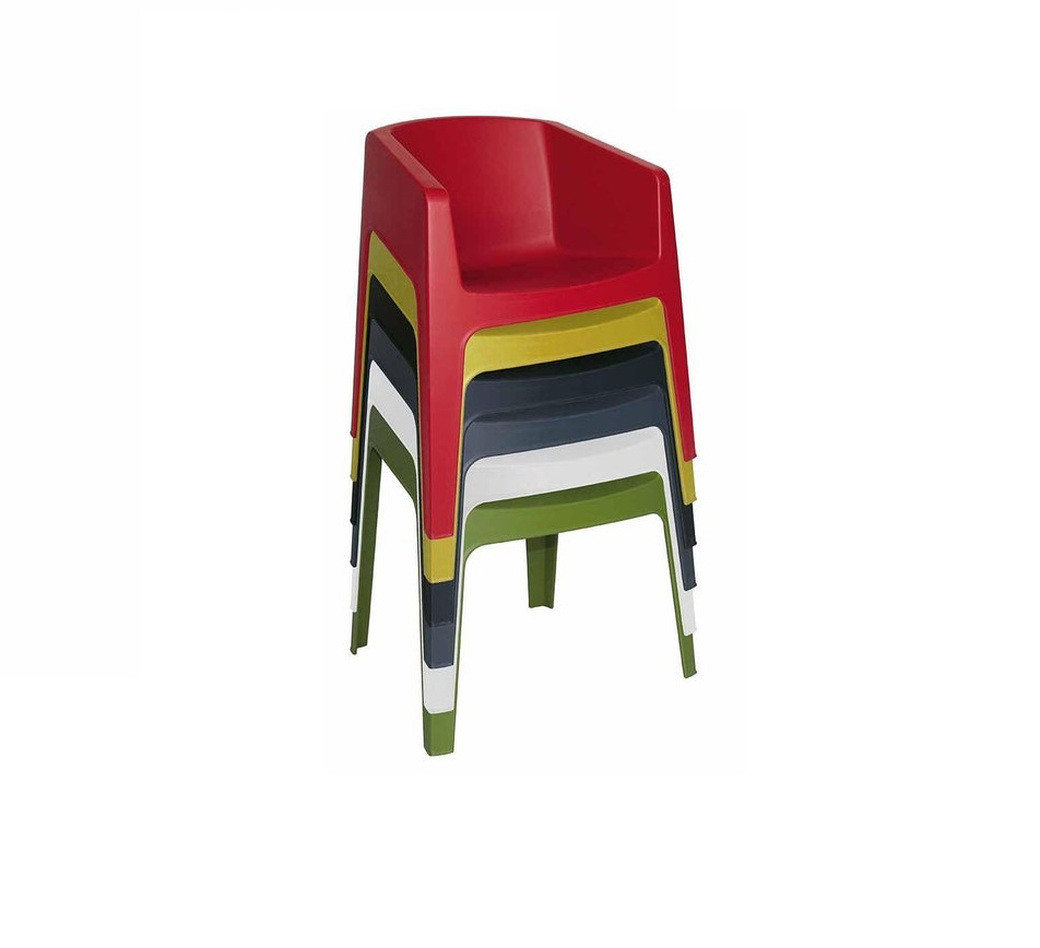 Descripción Carcasa polipropileno color con brazos. 4 patas. Uso exteriores gracias al caracterÃstico orificio para drenaje del agua. TOTOTO es un asiento monobloque que se puede apilar fácilmente en vertical. Los laterales y el respaldo están diseñados para dejar al descubierto parte del asiento, dándole sensualidad y elegancia.